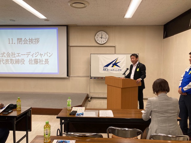 閉会挨拶はエーデイジャパンの佐藤社長に