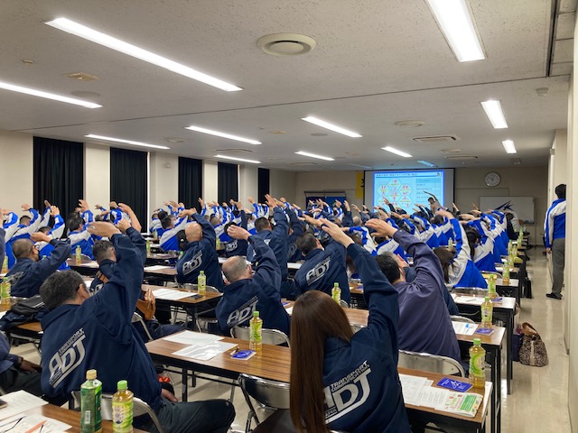 「経営理念」の唱和にはエーデイジャパン代表として、北九州営業所 新入社員の